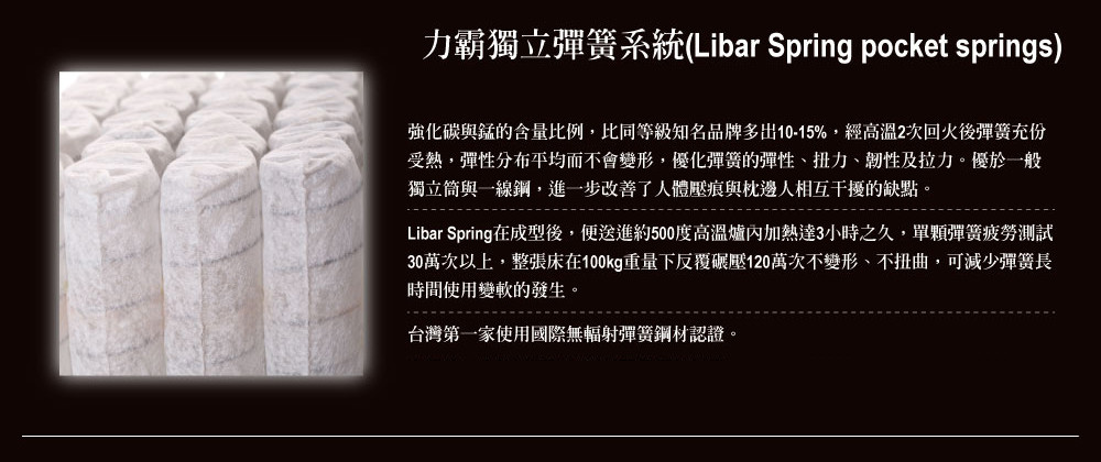 ◎擁有最舒適、最好的品質及功能。雙層力霸獨立筒彈簧提供極致的舒適及柔軟度。
