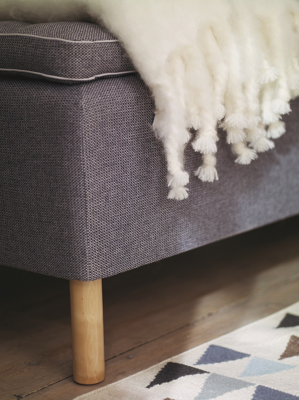 ◎內建式的馬達幾乎寂靜無聲,附上的遙控器可輕易自在地調整床頭及床尾。